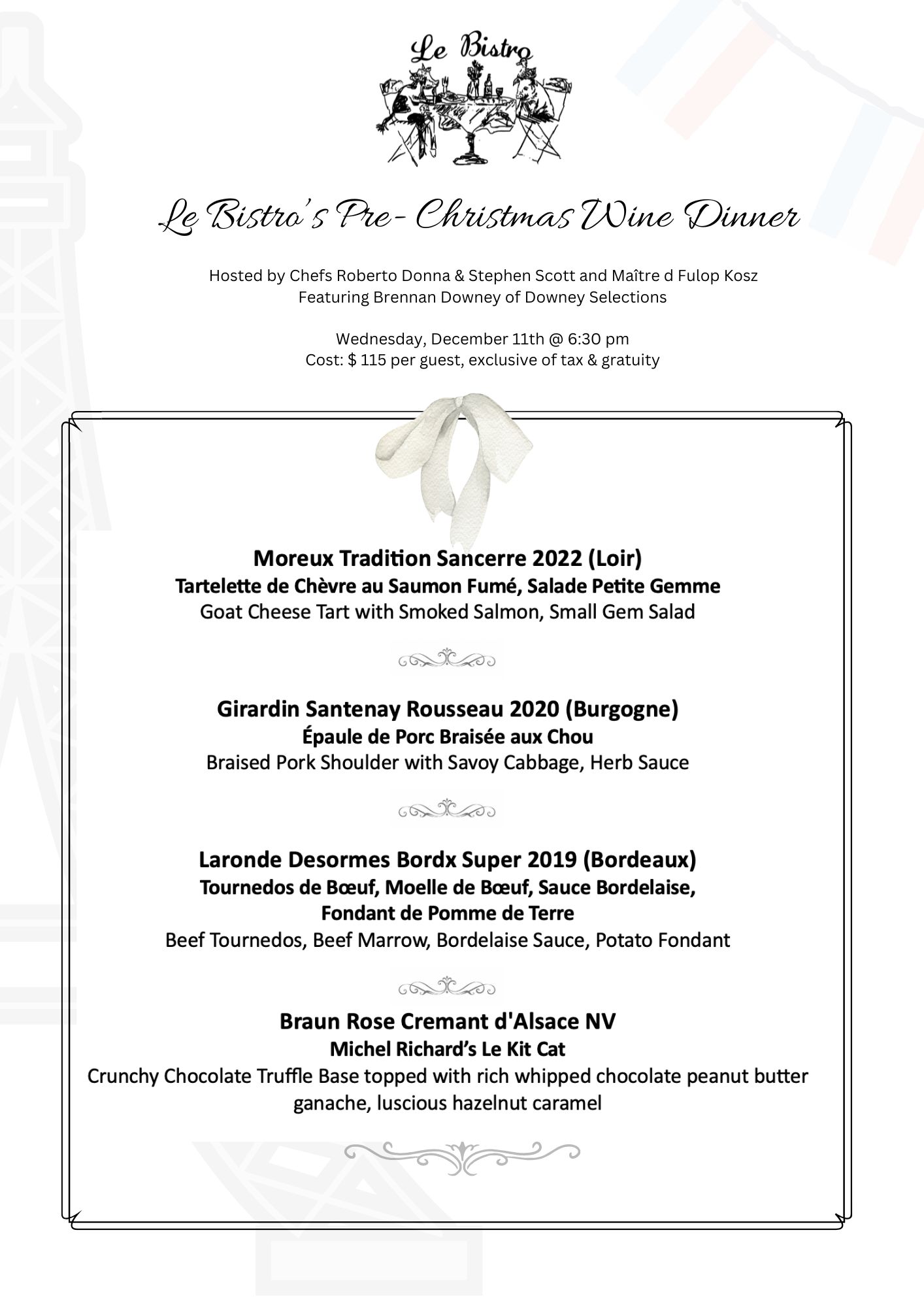 Le Bistro's Pre - Christmas Wine Dinner